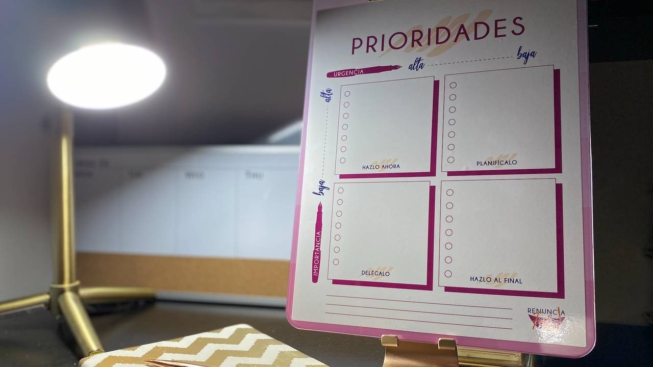 Triplica y maximiza tu tiempo con tu Tablero de prioridades, integrado a un clipboard de superficie “erasable” que puedes colgar en la pared o llevar contigo a tus reuniones.